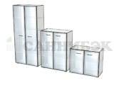 1)Толщина рабочих поверхностей из МДФ - 28мм. Толщина фасадов и порталов из МДФ – 19мм. Каркасы шкафов и тумб изготовленны из           ДСтП    и имеют толщину 18мм. Толщина полок из ДСтП во всех шкафах - 25мм.