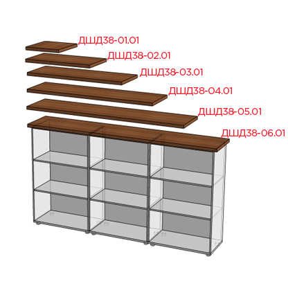 1)Столы, приставки, боковые и верхние порталы изготавливаются из ДСтП толщиной 38мм. Остальные детали – из ДСтП толщиной 22мм. и 16мм.