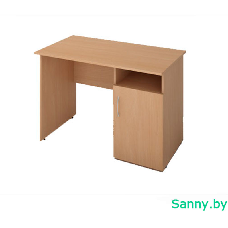 Однотумбовый письменный стол 1100х600х750 мм. Стол оснащен шестью регулируемыми опорами и тумбой с распашной дверью.