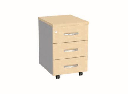 Выкатная тумба МАС-040, размер 408х503х608, имеет три выдвижных ящика, устанавливается на 4 опоры-колеса, верхний ящик оснащен замком.