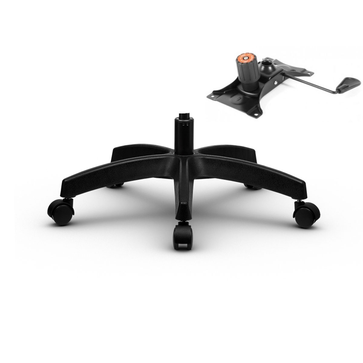 Механизм качания: топганГаз-лифт: стальной, с полимерным покрытием черного цвета.Пятилучье: пластиковое c треугольным сечением лучей, D - 650 мм, цвет черныйРолики: полиамидные, d - 50 мм