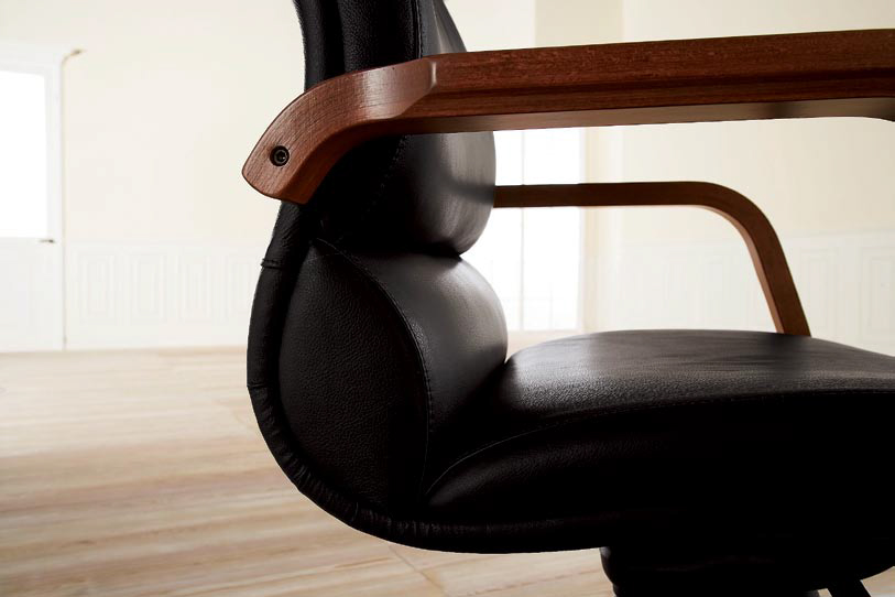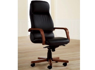 Кресло кожаное с деревянными с подлокотниками.