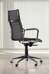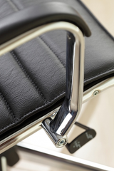 Кресло кожаное. Хромированные подлокотники с декоративными кожаными накладками.