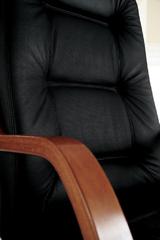 Выполнено в классическом стиле. Возможны два вида отделки: орех, палисандр. Обивка из кожи разных цветов.