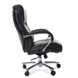 Удобное кресло CHAIRMAN 402 с мягкими подушками на спинке и сиденье украсит собой кабинет руководителя крупной организации или ваш домашний кабинет. Подлокотники металлические, хромированные с мягкой накладкой в цвет основной обивки. Крестовина металлическая хромированные. Обивка кресла изготавливается из экокожи. Механизм качания топ-ган с регулировкой жесткости пружины под вес до 250 кг., и фиксацией кресла в рабочем положении.