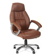Кресло премиум класса для руководителя, с обивкой из натуральной кожи, пластиковыми подлокотниками и кожанными накладками на них, механизмом качания с возможностью фиксации кресла в рабочем положении, а также пластиковой крестовиной.