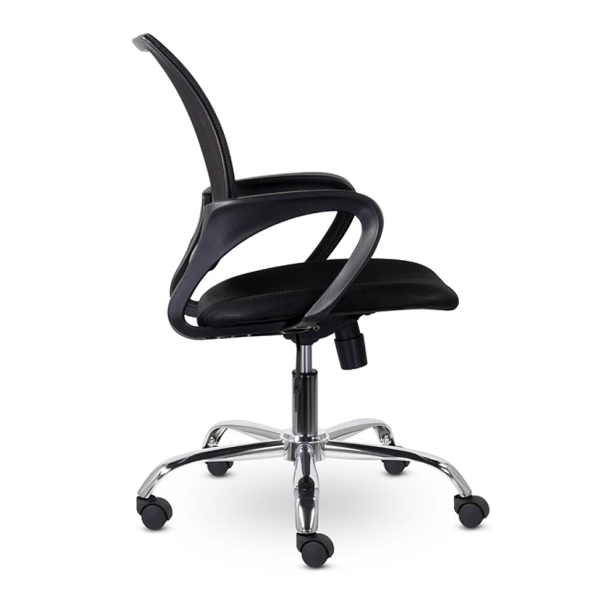 Современное компактное кресло для персонала будет хорошо смотреться в открытых офисах и коворкингах. Сетчатая спинка обеспечивает оптимальную циркуляцию воздуха, что немаловажно при длительной работе. Широкие пластиковые подлокотники являются частью каркаса