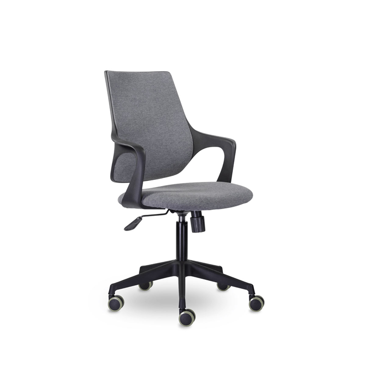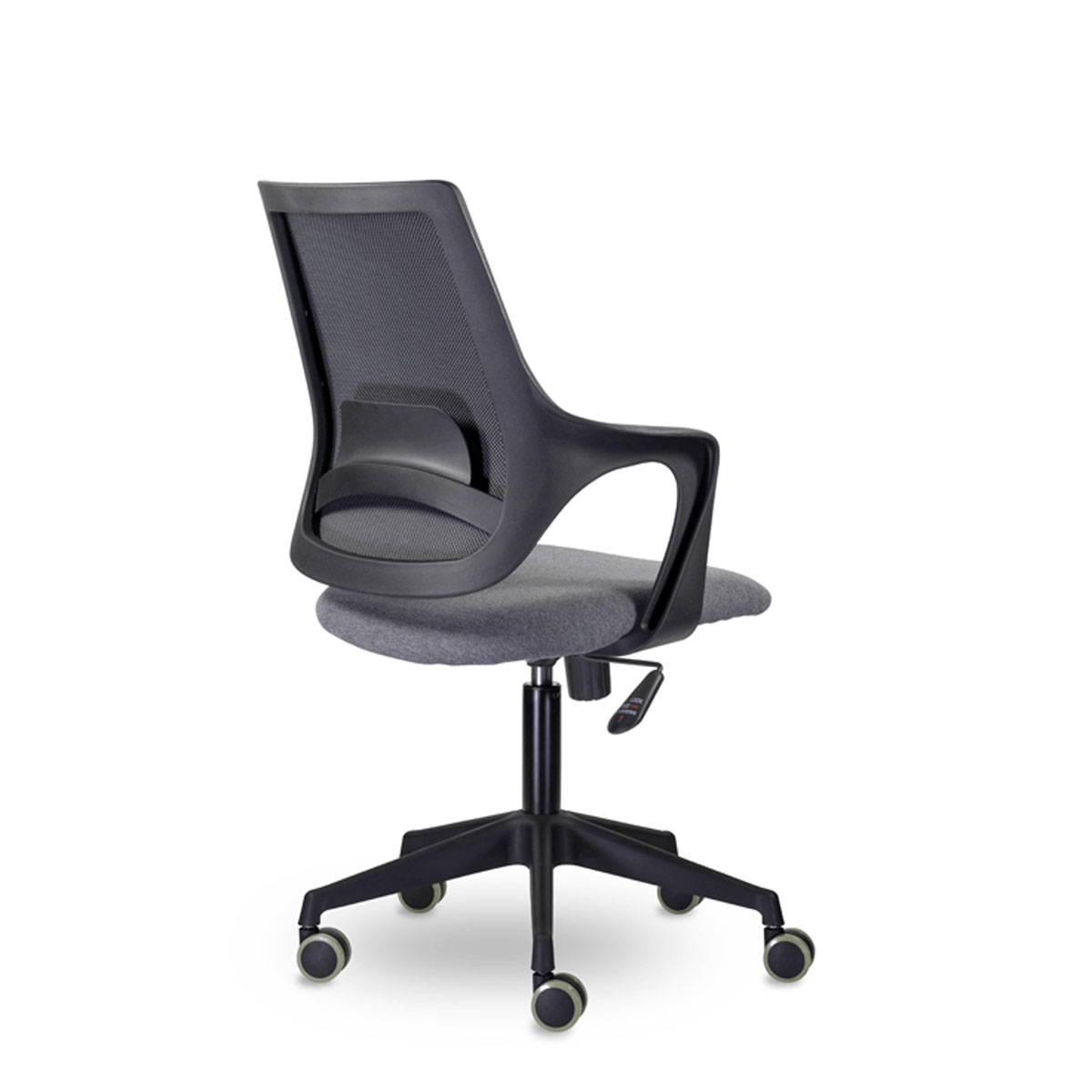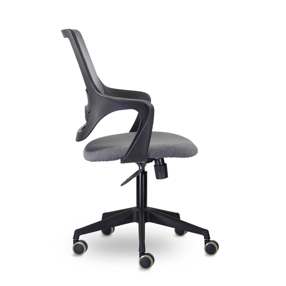 Воздушность конструкции выполнена за счет парящей спинки. При этом жесткость конструкции достигается за счет крепких подлокотников, являющихся частью каркаса.