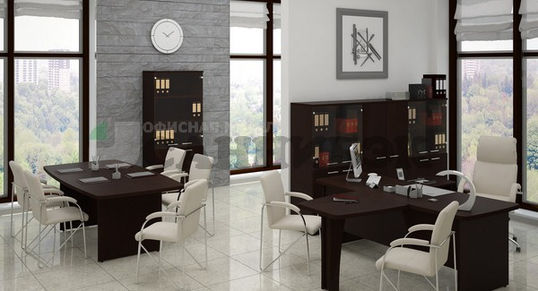 Вся мебель для кабинета руководителя серии "Баден" производится по индивидуальному заказу в Республике Беларусь, из качественного ламинированого ДСП (KRONOSPAN) толщиной 36и 18 мм.