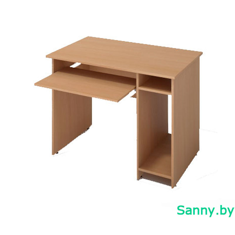 Компьютерный стол. Размеры 1000х600х750 мм. Стол оснащен регулируемыми подпятниками, выдвижной полкой для клавиатуры и отделением под системный блок.