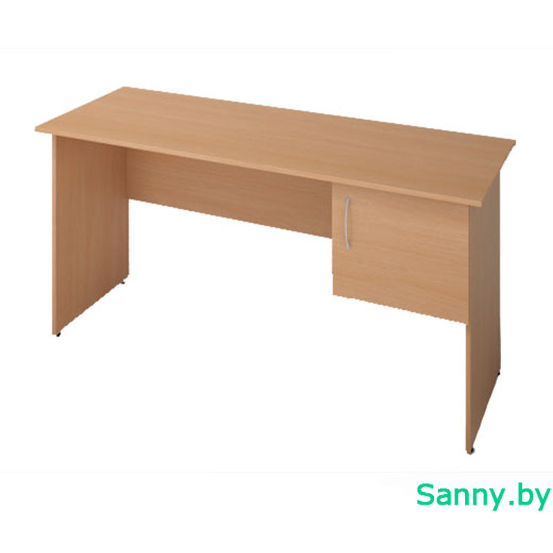 Прямоугольный письменный стол. Размеры 1500х600х750 мм. Стол оснащен четырьмя регулируемыми опорами и одной распашной дверью.