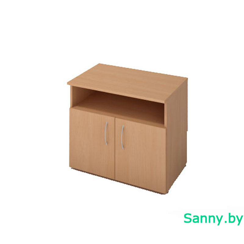 Тумба для оргтехники (под принтер и канцелярию). Размеры 700х455х600 мм. Оснащена регулируемыми подпятниками, нишей и двумя распашными дверьми.