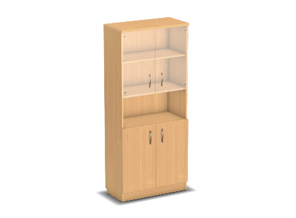 Шкаф ШКП-18/8 ДКС, размер: 804х402х1845. Глухие двери внизу, ниша, стеклянные двери вверху. Изготавливается из импортной ламинированной ДСП 18 мм.