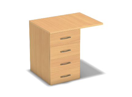 Тумба приставная Тпб 6/5, размер 800х600х755, четыре выдвижных ящика, верхний ящик оснащен замком. Изготавливается из импортной ламинированной ДСП 18 мм.