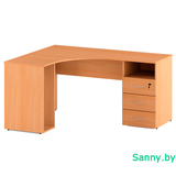 Угловой стол в стандартной комплектации укомплектованный подставной тумбой. Размеры изделия 1500х1200/500х750