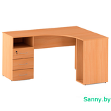 Угловой стол в стандартной комплектации укомплектованный подставной тумбой. Изображен Левый Размеры изделия 1500х1200/500х750