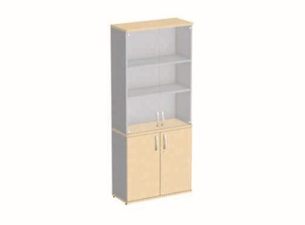 Шкаф ММ5-026, размер 808х350х1900, закрытый, глухие двери снизу, стеклянные двери сверху.