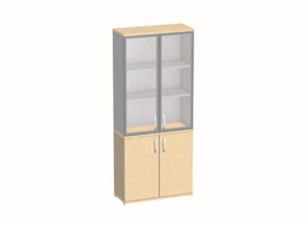 Шкаф ММ5-028, размер 808х350х1900, закрытый, глухие двери снизу, стеклянные двери в алюминевой раме сверху.