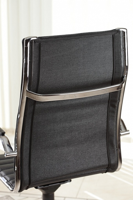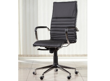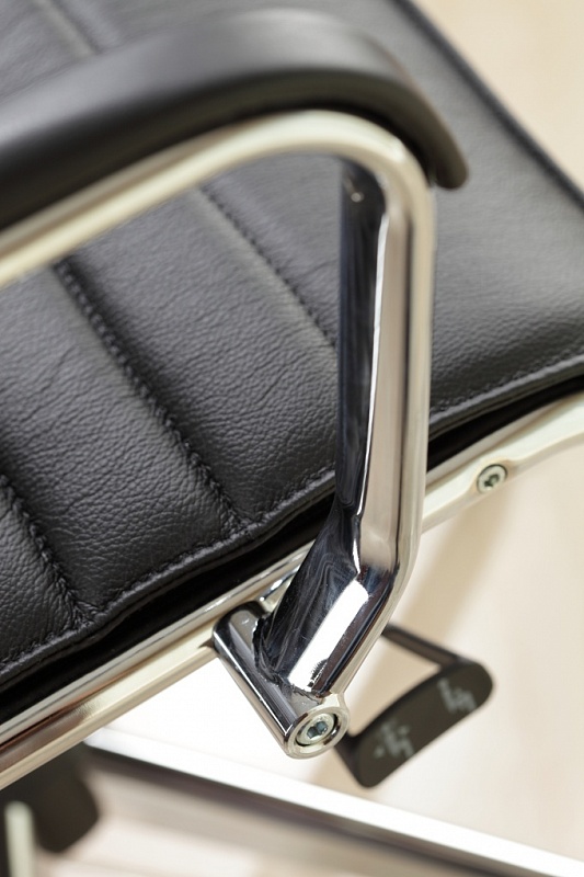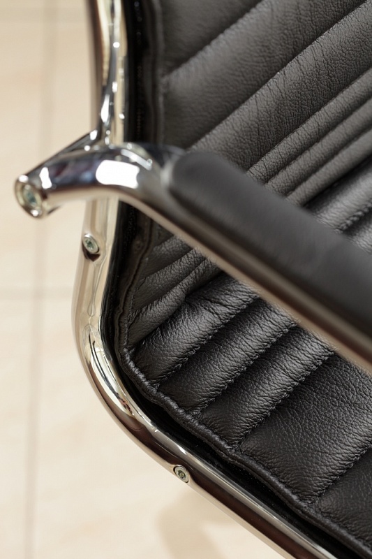 Кресло кожаное. Хромированные подлокотники с декоративными кожаными накладками.