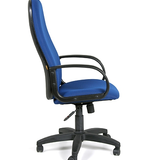 Кресло для руководителя с большим выбором материалов обивки, с пластиковыми подлокотниками и механизмом качания с возможностью фиксации кресла в рабочем положении, а также черной пластиковой крестовиной.