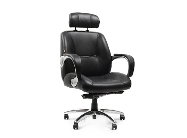 Кожаная обивка. Металлические подлокотники с кожаными накладками. Механизм качания повышенной комфортности с возможностью фиксации кресла в рабочем положении. Крестовина выполнена из хромированного металла с пластиковыми накладками для ног.