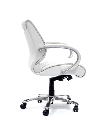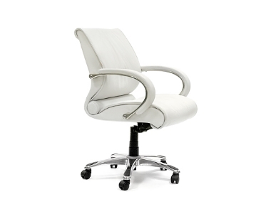 Кресло для руководителя премиум класса, с обивкой из натуральной кожи, металлическими подлокотниками и кожанными вставками на них, и механизмом качания повышенной комфортности с возможностью фиксации кресла в рабочем положении, а также хромированной металлической крестовиной с пластиковыми накладками для ног.