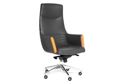 Комфортное кресло премиум-класса, для руководителей, с обивкой из натуральной кожи, с накладками из натурального дерева на подлокотники, механизмом качания повышенной комфортности с возможностью фиксации кресла в рабочем положении, отлично подойдет для менеджеров высокого уровня.