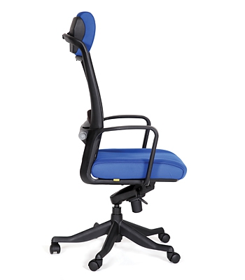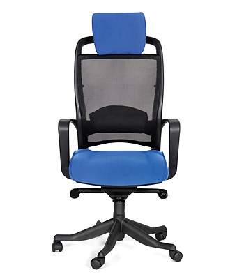 Кресло для руководителя с обивкой из ткани, пластиковыми подлокотниками и механизмом качания повышенной комфортности с возможностью фиксации кресла в нескольких положениях.